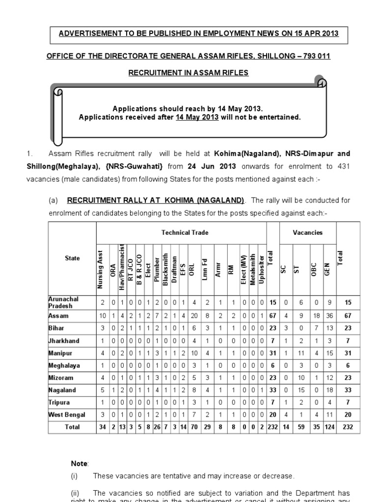 The assam rifles is the oldest paramilitary force of indiathe unit can trace its lineage back to a paramilitary police force that was formed under the british in 1835 called cachar levysince then the assam rifles have undergone a number of name changesthe assam frontier police 1883 the assam military police 1891 and eastern bengal and assam military police 1913 before finally. With 46 battalion there are 63747 personnel are serving the nation as a assam rifles soldier. For male and females proportionate to height and age as per medical standards. Assam rifles compassionate ground rally bharti 2020. For any enquiry regarding service and pension matters. Assam rifles help line no 18003453649.